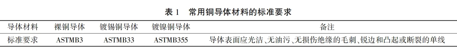 但是大部分企業(yè)仍然把銅作為導(dǎo)體層的主要材料,首先銅的電阻率較低,其次銅大部分性能都優(yōu)于同級別的鋁,如載流量大、電壓損失低、能耗低和可靠性強等。目前導(dǎo)體選材一般采用國標(biāo)6類軟導(dǎo)體(單根銅絲伸長率必須大于25%,單絲直徑小于0.30)去保證銅單絲柔軟性、韌性強。表1列出了常用的銅導(dǎo)體材料所需要滿足的標(biāo)準。